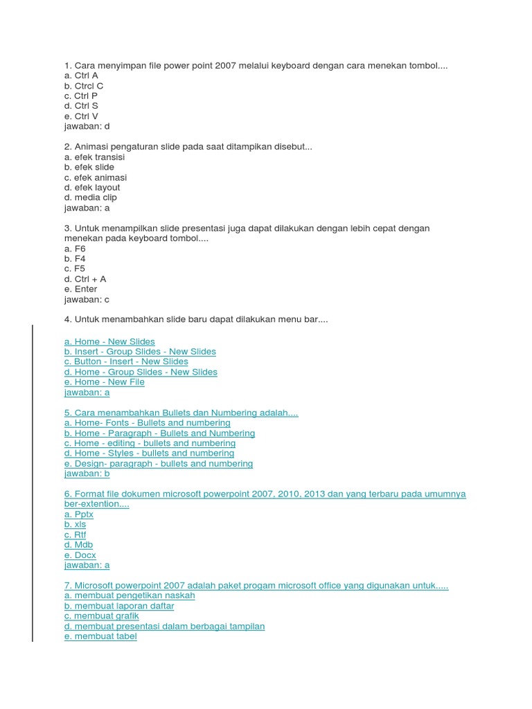 Soal Powerpoint Pilihan Ganda Dan Jawabannya Part 2 from 2.bp.blogspot.com Pengaturan animasi slide pada saat ditampikan disebut. We did not find results for: Maybe you would like to learn more about one of these? Check spelling or type a new query.